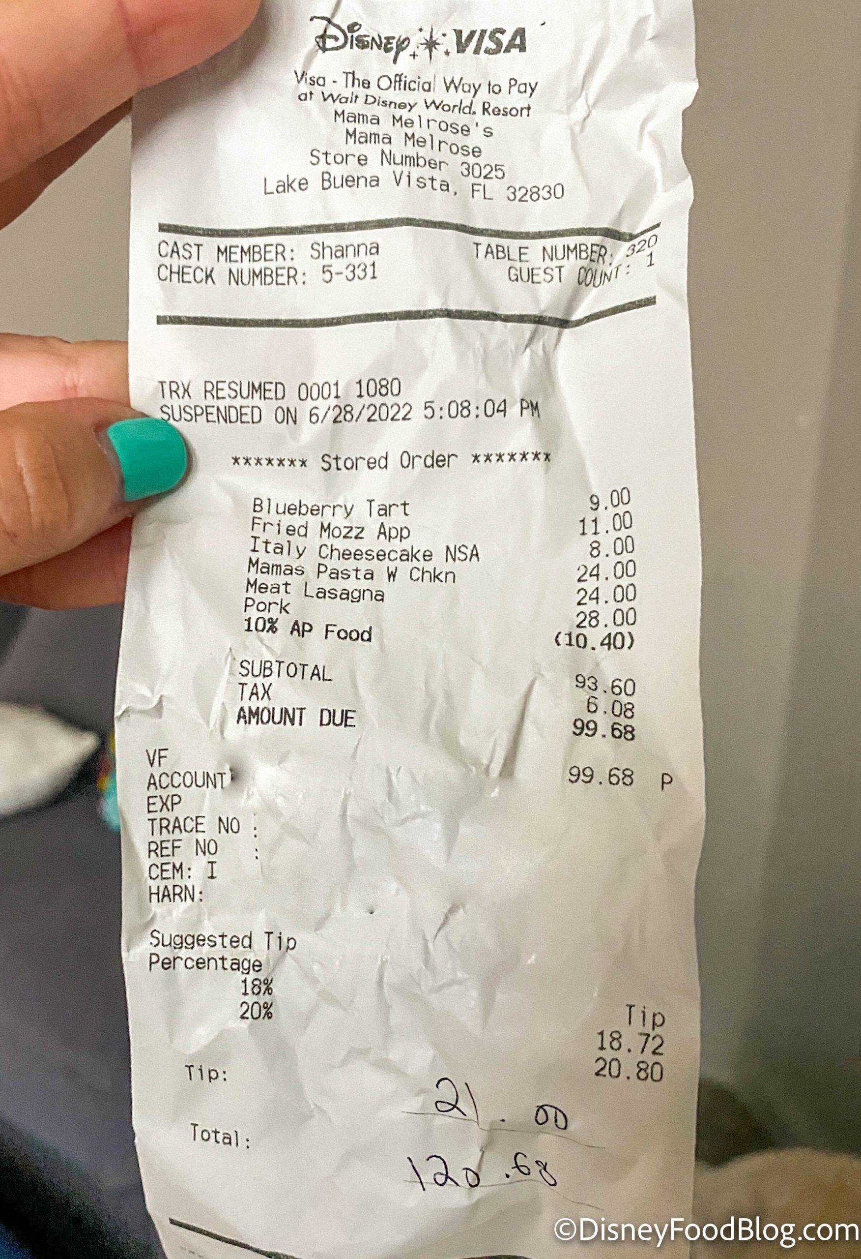 And when it comes to dining, most Disney World receipts actually calculate the amount for both 18% or 20% tips so you don’t have to do TOO much math or guessing games. If you want to tip 25%, you can increase your tip amount.