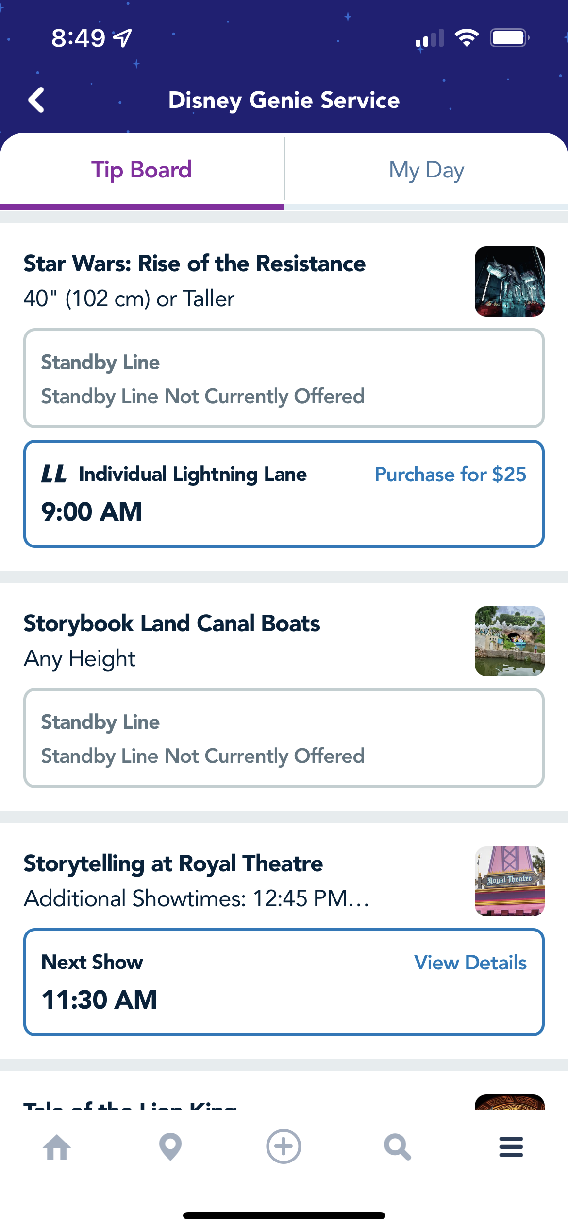 We also checked prices for Individual Lightning Lane attractions. Rise of the Resistance in Disneyland is $25 per guest today.