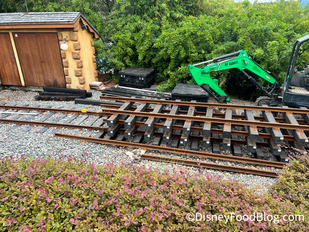 We’re seeing some progress on the Walt Disney World Railroad tracks over near TRON: Lightcycle Run! Recently, more work has been done on the tracks in various locations throughout Magic Kingdom — so hopefully we’re one step closer to finally being able to climb aboard this train once again.