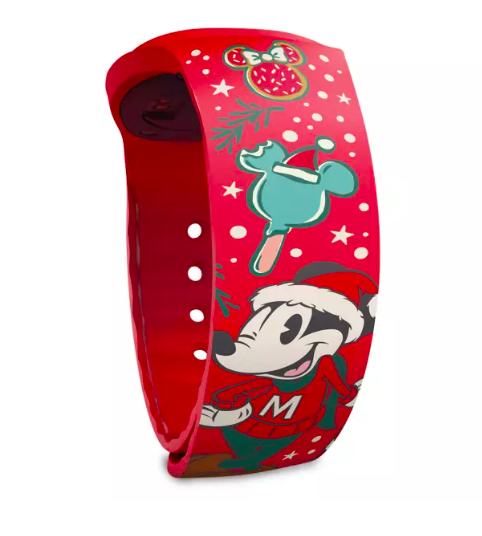 It’s time to deck the halls — and your wrist — because NEW holiday MagicBand+ designs have arrived on shopDisney! First up is the Mickey Mouse Holiday MagicBand+ which features an all-over red design, plus peppermint Mickeys and cookies.