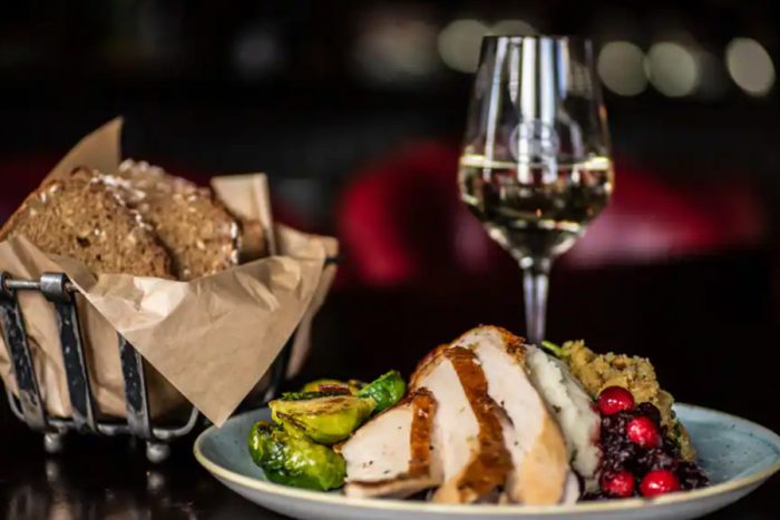 - Herb Roasted Turkey: Hand-carved turkey, creamy mashed potatoes, traditional stuffing, roasted brussels sprouts with bacon lardons, corn casserole, and gravy (Kid’s version available)