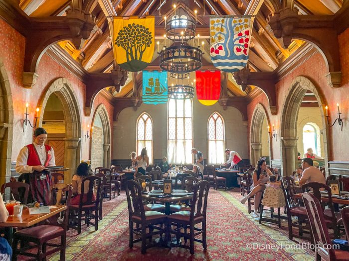 But there are some slight downsides. Character dining here is only available for dinner, is on the pricier side (and requires 2 Table Service meal credits on the Disney Dining Plan), and if you’re looking for royalty, you’ll only find one princess here (well, and an Evil Queen).