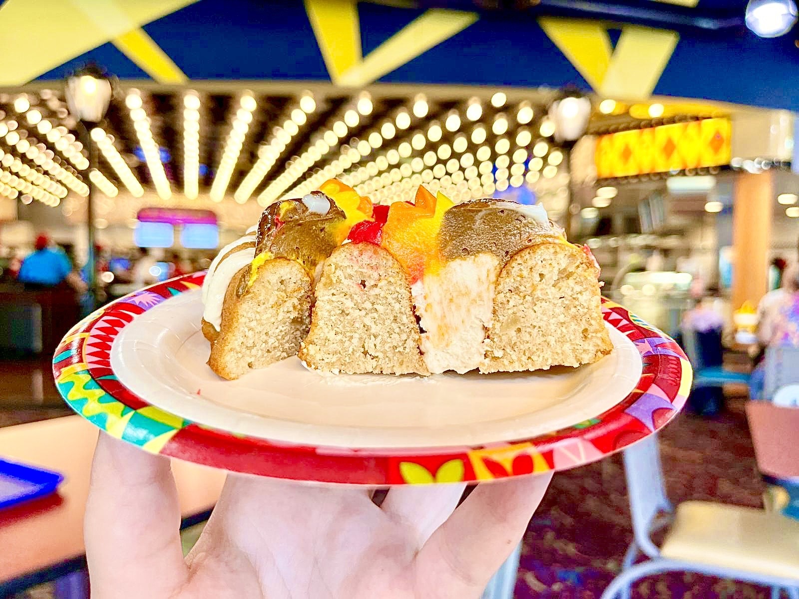 The first treat can be found at all 3 of Disney’s All-Star Resorts (Movies, Music, and Sports). Head to the Intermission Food Court, World Premiere Food Court, or End Zone Food Court to get the Gobble Wobble Bundt Cake (and with a name like that, we know you can’t resist this treat!).