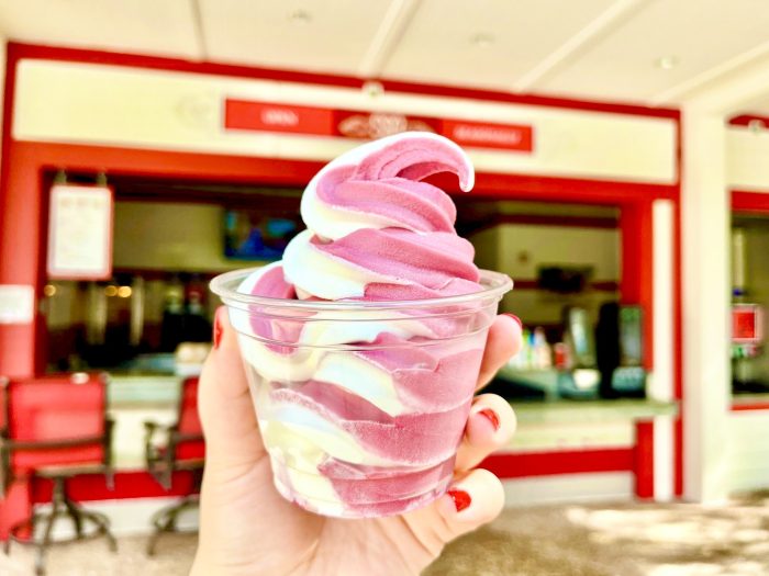 This treat is DOLE Whip cherry swirled with vanilla soft-serve 🍦 and can be found for $5.29 at the Backstretch Pool Bar at Disney’s Saratoga Springs Resort. pic.twitter.com/DLhMUI2WXA