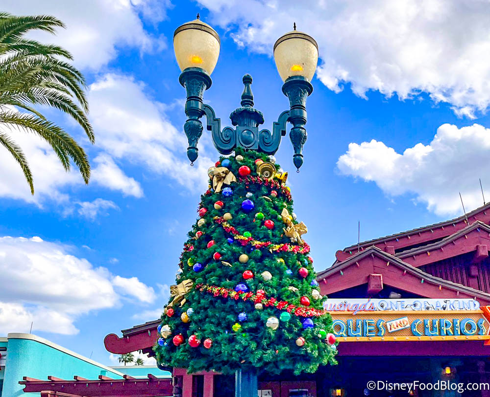 Yesterday when visiting Hollywood Studios for the premiere of Fantasmic!, we noticed that the park was all decked out for the holiday season, with garland, lights, wreaths, and more. But there was one big thing missing — the Christmas tree!
