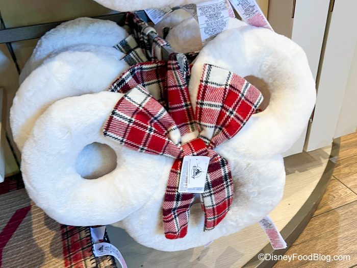 Another option for a Mickey-shaped wreath can be found at shopDisney. The Mickey Mouse Homestead Wreath is made of a soft plush fabric with a plaid-print bow and a hanging loop.