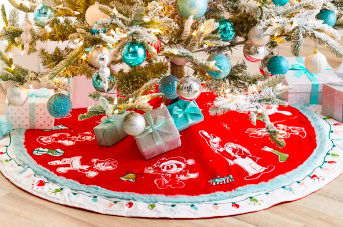 We found the perfect tree skirt for your Christmas tree this year! The Mickey and friends holiday tree skirt has Mickey and his pals embroidered onto it, along with some snowflakes and other festive designs.