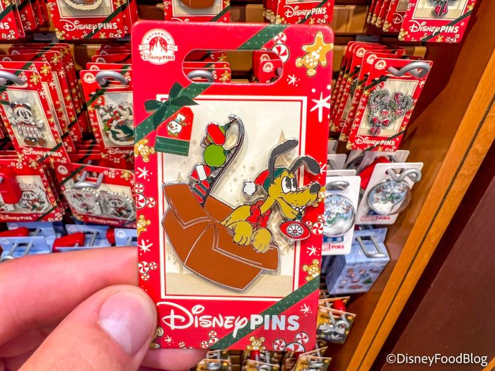 Guess what else we found in the merchandise shops — if you guessed pins, you’d be correct! There’s the Peter Pan Holiday Pin…