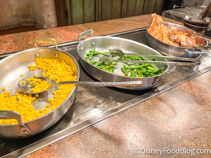 Don’t worry, they didn’t forget about your kiddos! Next to the appetizers, there’s a section of the buffet that’s lower than the rest, the perfect height for the little ones to serve themselves. There we found corn, green beans, chicken legs…