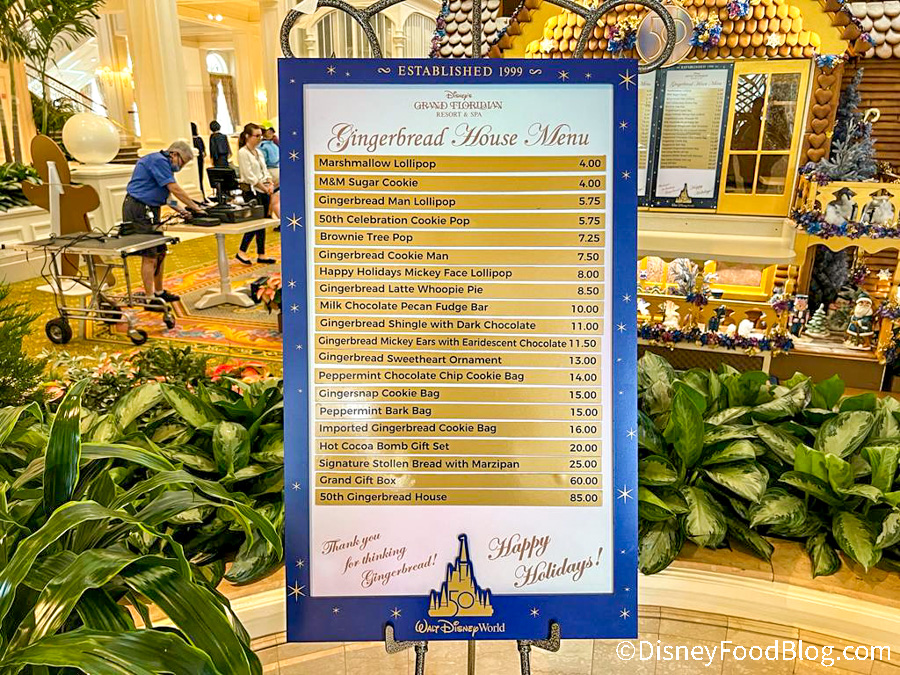The Gingerbread House opens on Wednesday, November 9th, and now we’ve got a look at the menu board and prices of the treats that will be served in this iconic holiday setting!