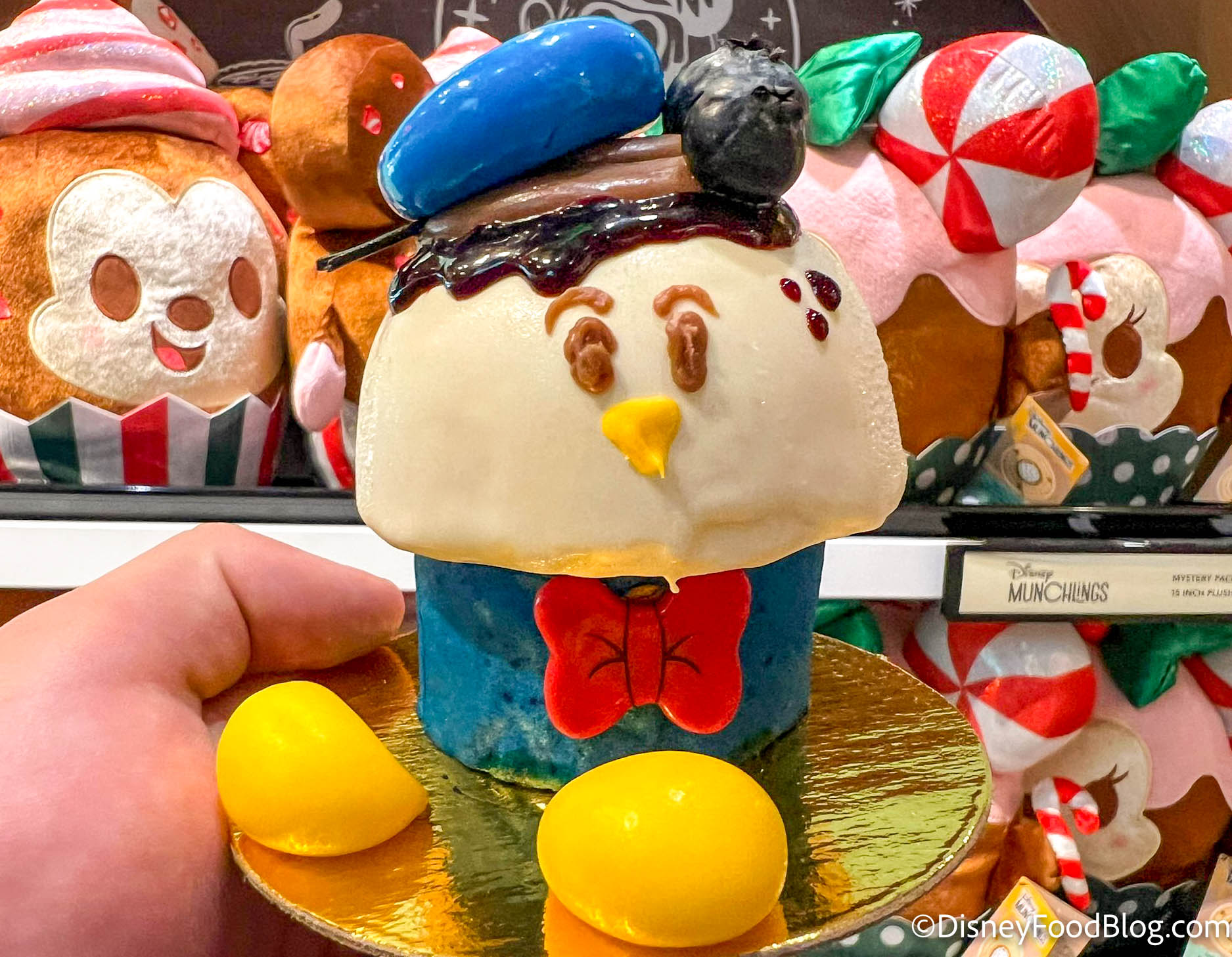 We had to try the Donald Duck Munchling Cake for $14, which is made with vanilla chiffon cake, Japanese sponge roll, yuzu curd, yuzu chantilly, caramel ganache, blueberry jam, and jalapeño gel drizzled on Donald’s hat. Yes, the treat is spicy — like Donald.