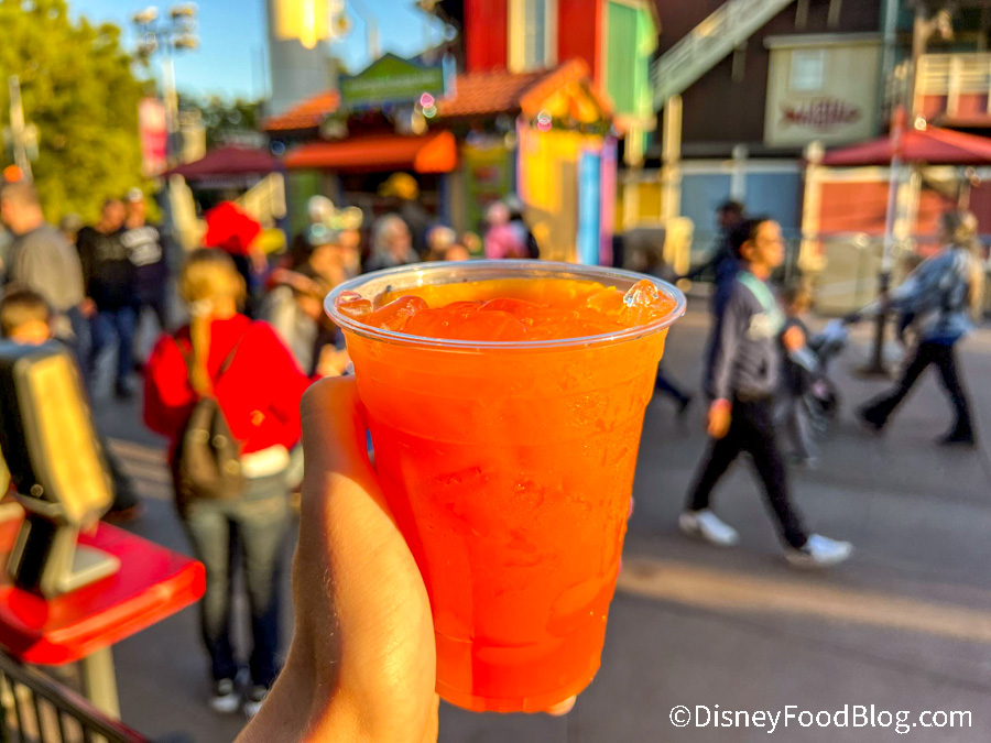 This is heavy on the peach flavor — almost like a peach Shirley Temple — but that isn’t a problem for us! We think the drink is super refreshing without being too sweet — a great balance of flavors.