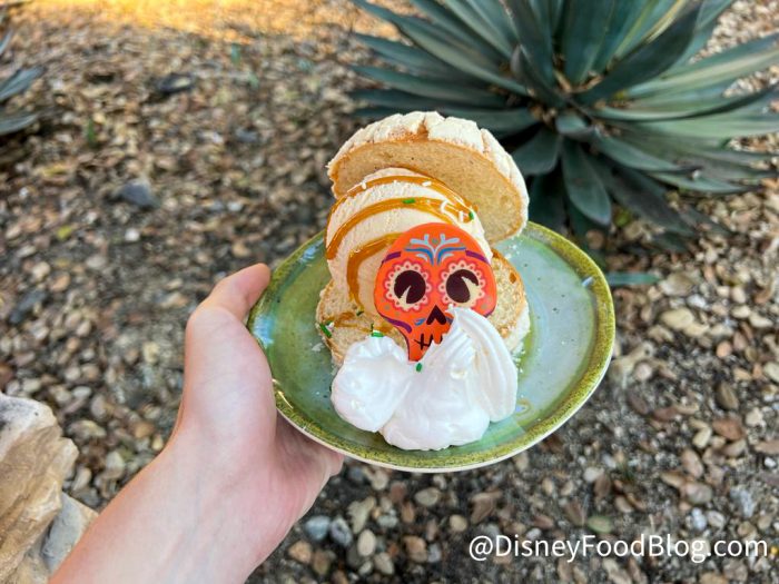 With the Festival of Holidays and he holidays themselves just beginning in the resort, we’ve been trying lots of snacks at the Disneyland Resort recently. And now, we’re back for another one! Come with us to try the Pan Dulce Ice Cream Sandwich at Rancho del Zocalo.