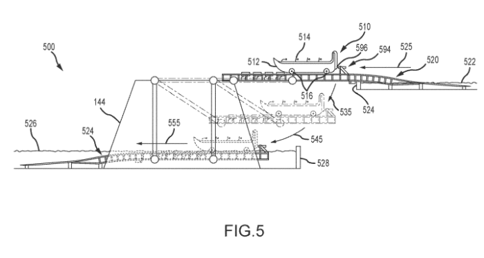 In the patent, it’s estimated that the drop could be between 5 and 20 feet, and the momentum would provide propulsion in a forward motion. However, it also says that “some embodiments of the drop swing propulsion system are configured to propel the vehicle(s) in the same direction after the drop is experienced while other embodiments of the new system provide a concurrent change in direction for each vehicle,” so it might not just be to move forward.