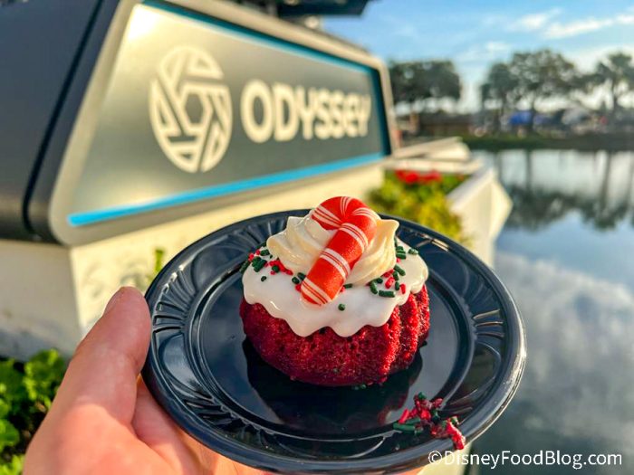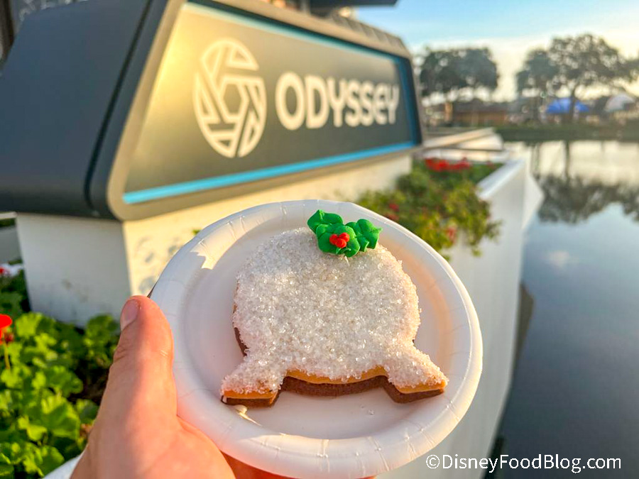 It wouldn’t be a trip to EPCOT without seeing Spaceship Earth. And at the Festival of the Holidays, you can get the returning Salted Caramel Spaceship Earth Cookie for $5! This cookie made our best of the fest list in 2021. It’s just as delicious this year! We love the salted caramel flavors mixed with the buttery cookie.