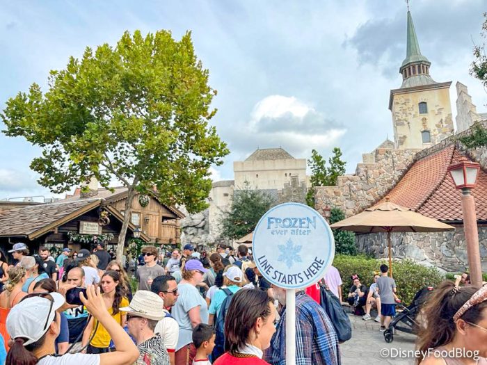Frozen Ever After, one of the most popular rides in the park, had a line extending all the way through the Norway pavilion.