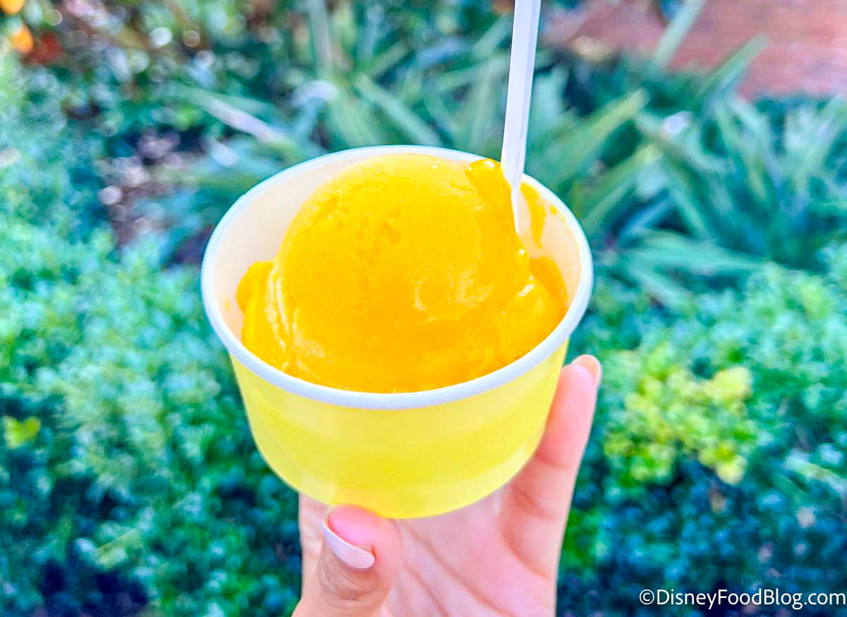 Did we just magically get transported to a tropical paradise within Disney World, ’cause it sure feels like it! This gelato seriously had us reaching for our flip-flops and a towel — it made us feel like we were at the beach in the best way possible. 🏖