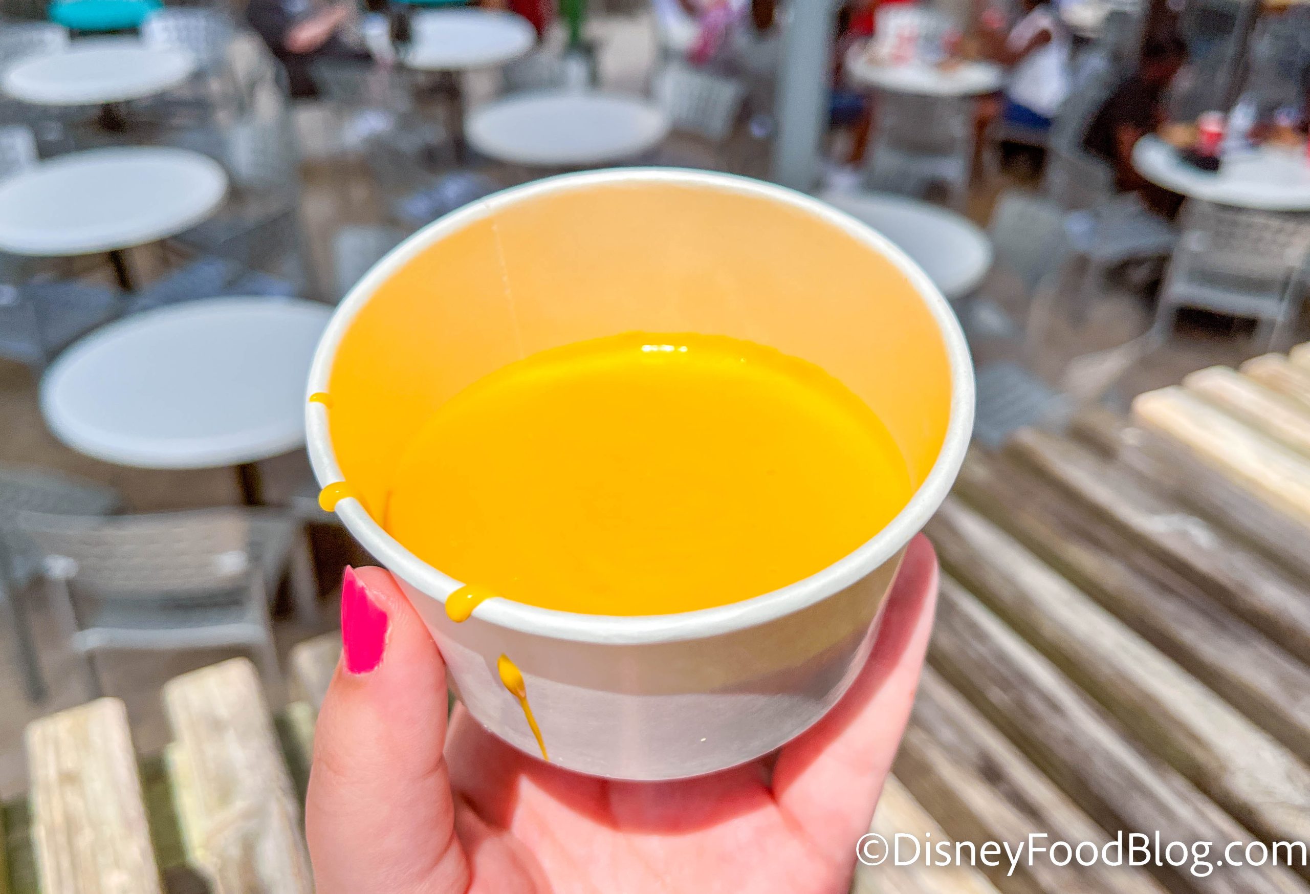 It ain’t easy being cheesy — unless you’re us at pretty much all times when we’re in Disney World. Listen, for just $1 you can add a cup of ooey, gooey, probably-not-totally-real plastic cheese to any snack you want at several quick service spots throughout the parks. Mickey pretzel? Add some cheese. French fries? Add some cheese. Corn dog nuggets from Casey’s Corner? We’re absolutely adding cheese.