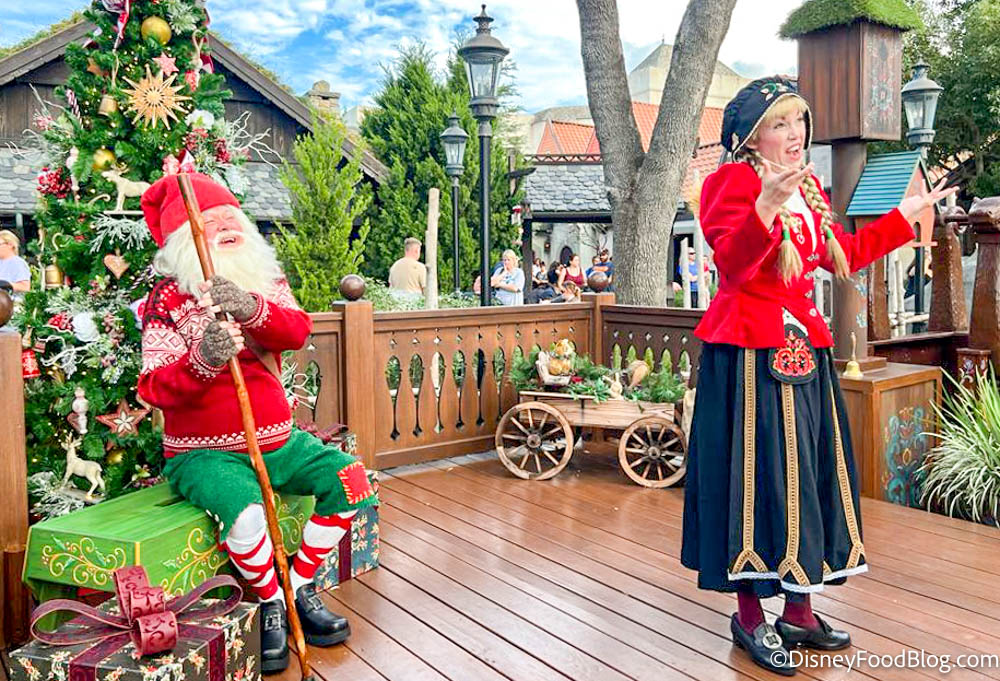 There is also a bunch of entertainment at the festival, like the Holiday Storytellers. These are placed around the World Showcase and will share the stories of their country’s holiday traditions! And, you can meet Santa Claus over at the Odyssey Pavilion.