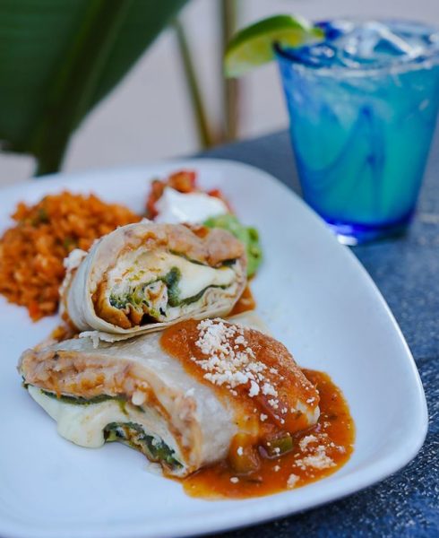 Okay, so we’re already fans of the burritos at Tortilla Jo’s, and the new burrito sounds AMAZING. It’s a Chile Relleno Burrito. It’s a Roasted Poblano pepper stuffed with a three-cheese blend in a flour tortilla, served with refried beans, salsa ranchera, pico de gallo, guacamole, and sour cream. SPICY! Also, YUM!