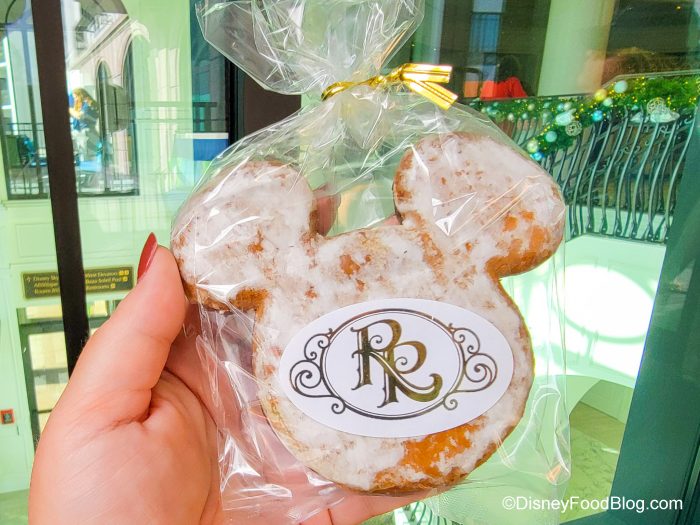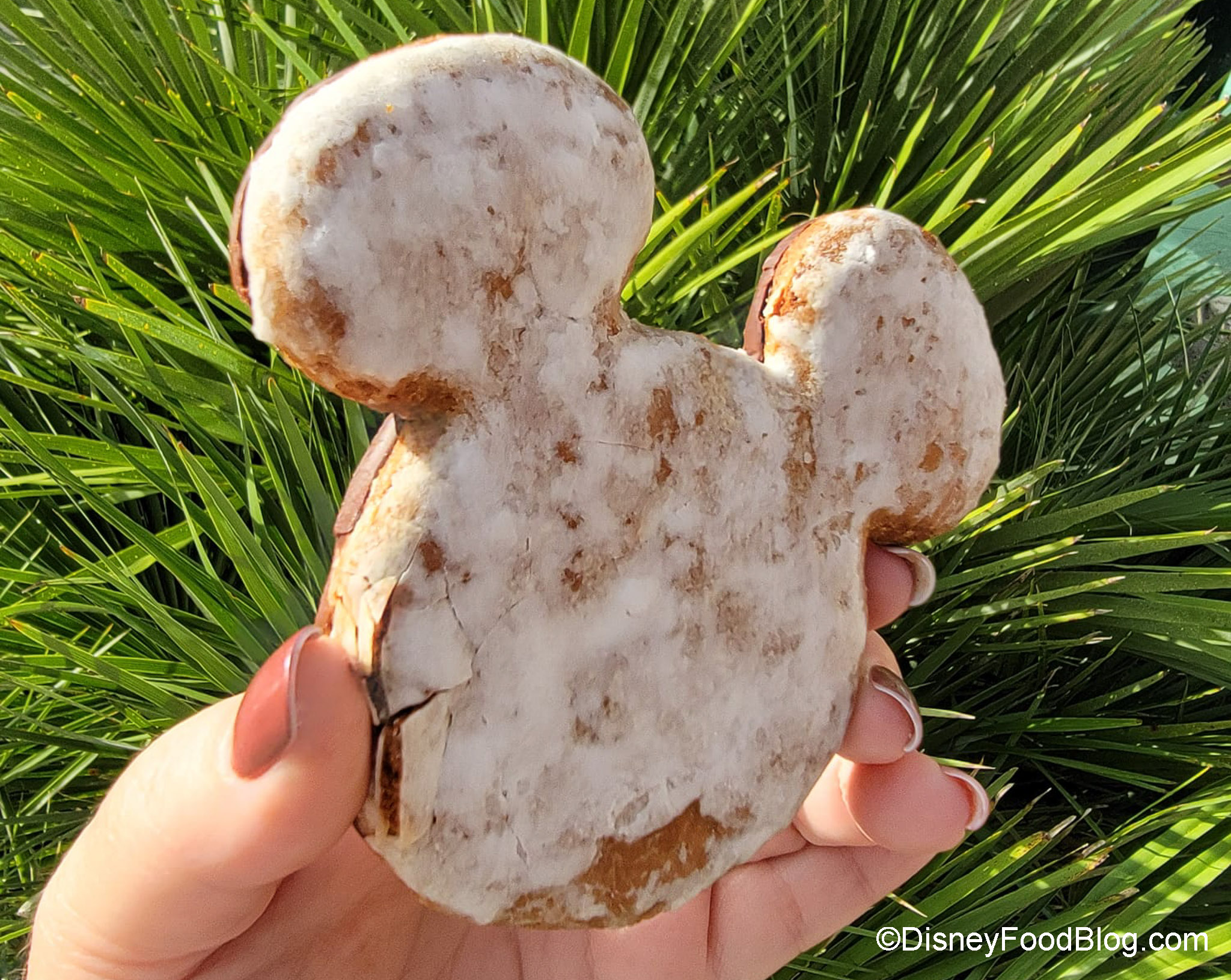 Meet the Riviera Resort Mickey Gingerbread Cookie. It’s a Mickey-shaped gingerbread cookie with a sugar glaze. Pretty cute, right? It’s a pretty standard gingerbread cookie, and even tasted like it, but…