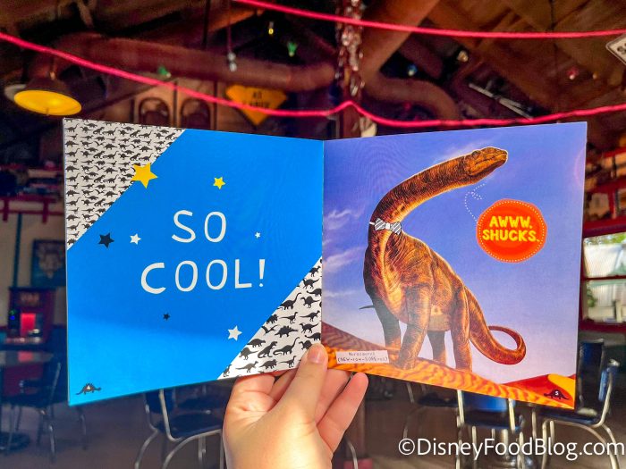 Now about that book! It’s a really cute short story crammed with fun facts about dinosaurs. It talks about their diet, their lifestyle, and shows pictures of various dinos. It’s a great way to get your kiddos excited about some of the offerings in Dinoland, U.S.A.