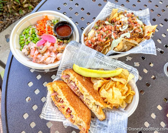 And finally, we grabbed the Short Rib Grilled Cheese, which is made with braised beef short ribs that are cooked with a house-made spice blend, tamarind, and red wine. It comes topped with gouda cheese and pickled onion and served on Challah Bread (note that Disney had previously said this would come on Brioche Bread). This is priced at $12.99.