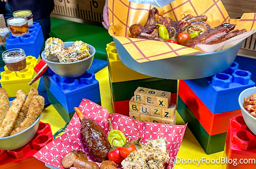 Originally, we could only guess at what that meant and spotted some clues in the video Disney released. Some sort of meat or sausage dish, condiment bottles — most likely barbecue sauce and bread service were all we could figure out.