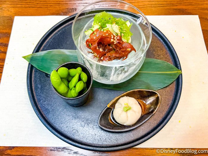 We also got edamame with this appetizer course and our reporter shared that it was some of the BEST edamame they’ve ever had!