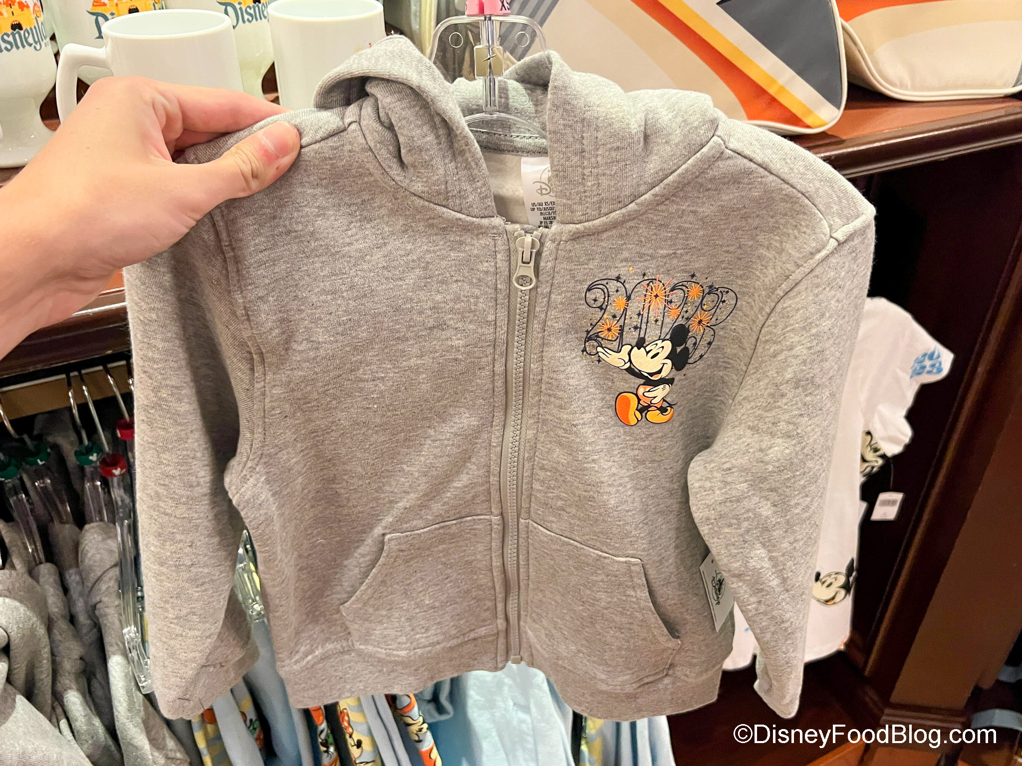 Overloading by 100th anniversary merchandise yet? Well, there’s even more! We found the 100 Mickey Hoodie ($64.99)…