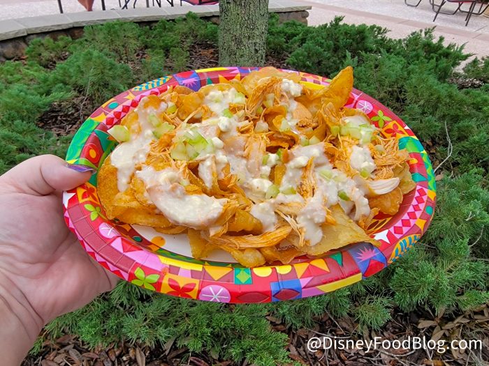 There are a couple of pretty good choices for snacks, including the Buffalo Chicken Nachos and New York-style Hot Dog. We thought the nachos were a basic but tasty option that’s good for sharing, and that hot dog was a little more adventurous than most other Disney hot dogs. There’s also pizza and sandwiches on the menu, along with a shrimp cocktail, Mickey pretzel, and a fruit and cheese plate.