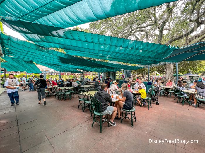 Outdoor seating at the Disneyland French Market