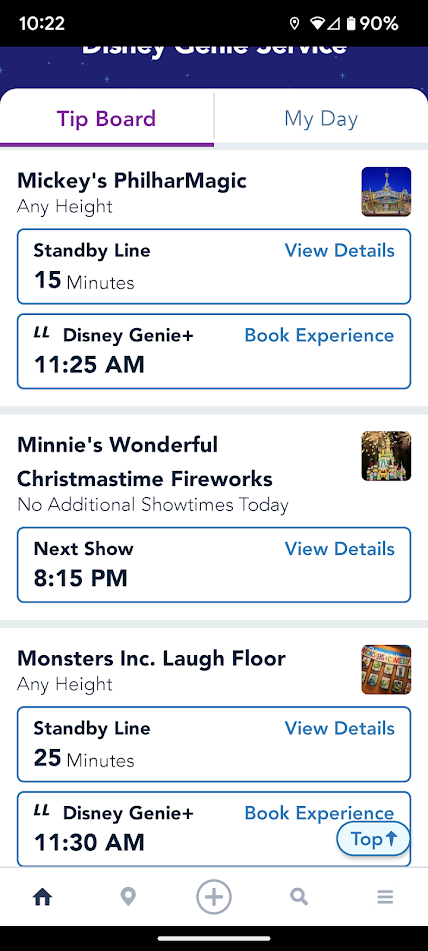It’s only a 15-minute wait for Mickey’s PhilharMagic, while Monsters, Inc. Laugh Floor has just a 25-minute wait.