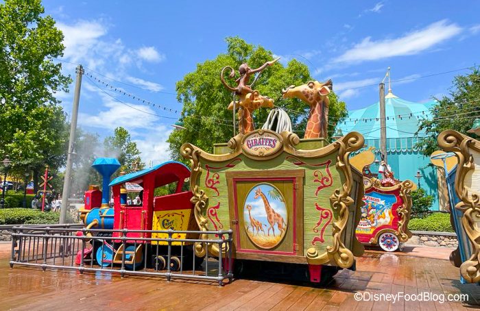 Finally, we make it to Storybook Circus, which is basically dedicated to the kids. You’ll find a train station for the Walt Disney World Railroad here (which runs around the park and has no height requirement). The Barnstormer is a great first coaster for little ones, as it’s only about 30 seconds long and doesn’t have any big drops (the height requirement is 35 inches).