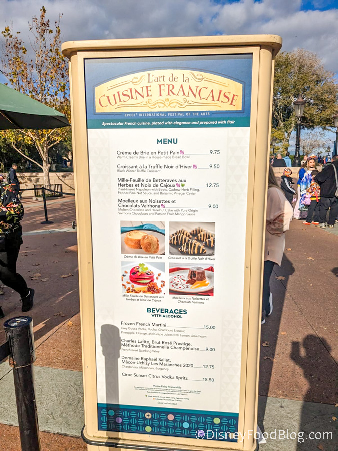 Enjoy beautifully plated French cuisine and drinks at L’Art de la Cuisine Francaise in the France Pavilion.
