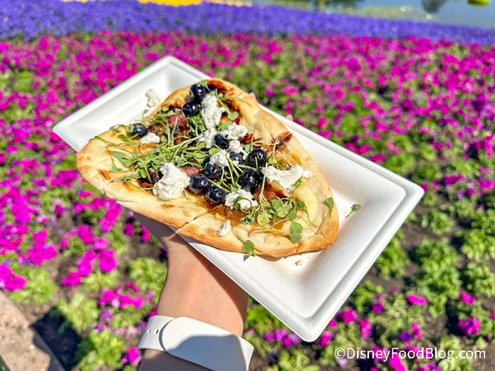 - Pollinator Flatbread with honey-whipped mascarpone, honey caramelized onions, blueberry gastrique, prosciutto, honey-whipped goat cheese, arugula, honey vinaigrette, and bee pollen (New) – $6.25, DDP Snack Eligible