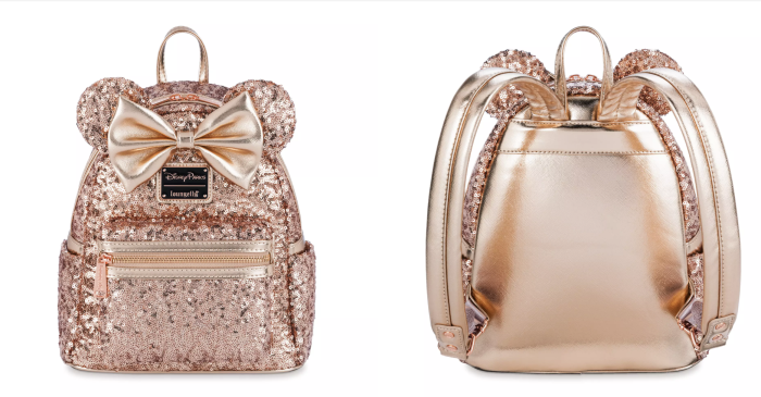 Finally, we found this Minnie Mouse Sequin Loungefly Mini Backpack in Rose Gold. This backpack was super popular when the Briar Rose Gold collection first debuted in 2019, so we were excited to finally see it online.