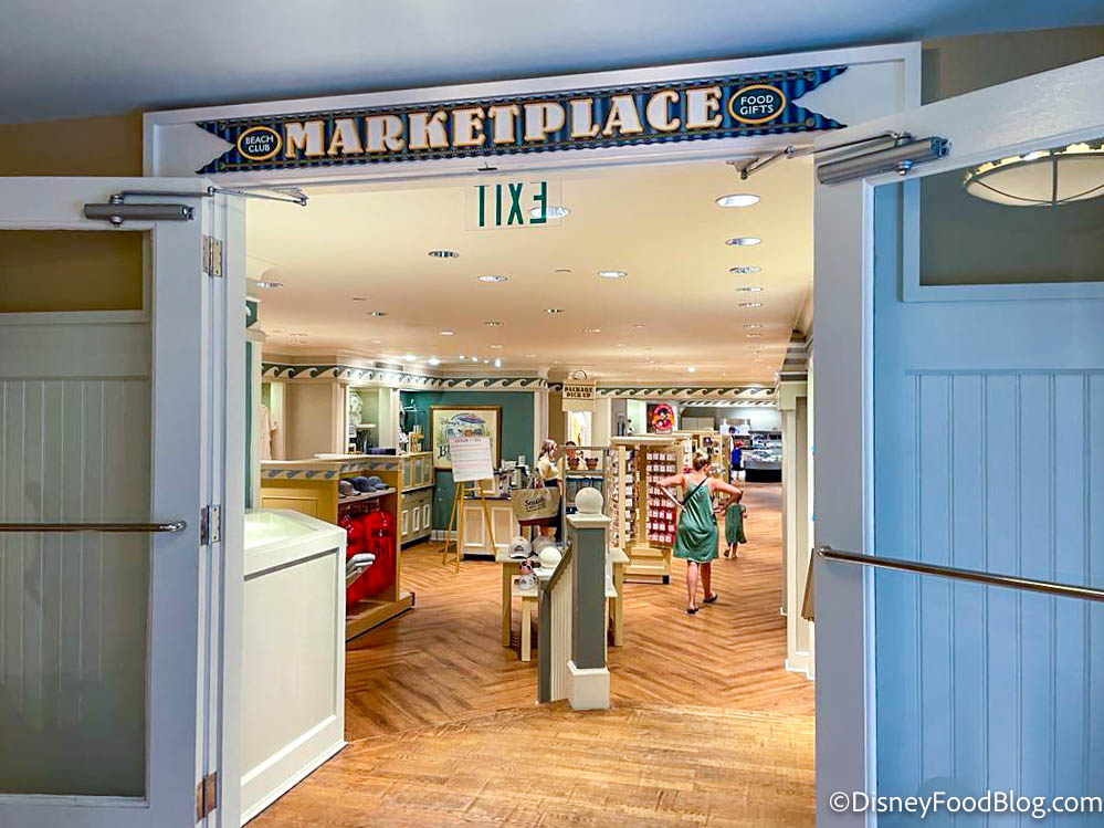 The Beach Club Marketplace is the quick service location and gift shop at Disney’s Beach Club Resort. Once you make your way through the gift shop you’ll find yourself in the quick service dining area, complete with a sandwich counter. Guests will find basic staples for breakfast, lunch, and dinner in addition to a dry goods section (think boxes of cereal, peanut butter, and other essentials you might need). This is also the location for filling your Refillable Resort Mugs.