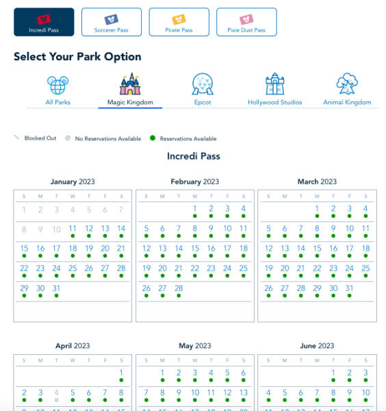 For a few weeks at the beginning of April, the Pirate Pass and Pixie Dust Pass tiers are both blocked out. That means that the reservations were completely filled up by those with the Incredi-Pass or the Sorcerer Pass.