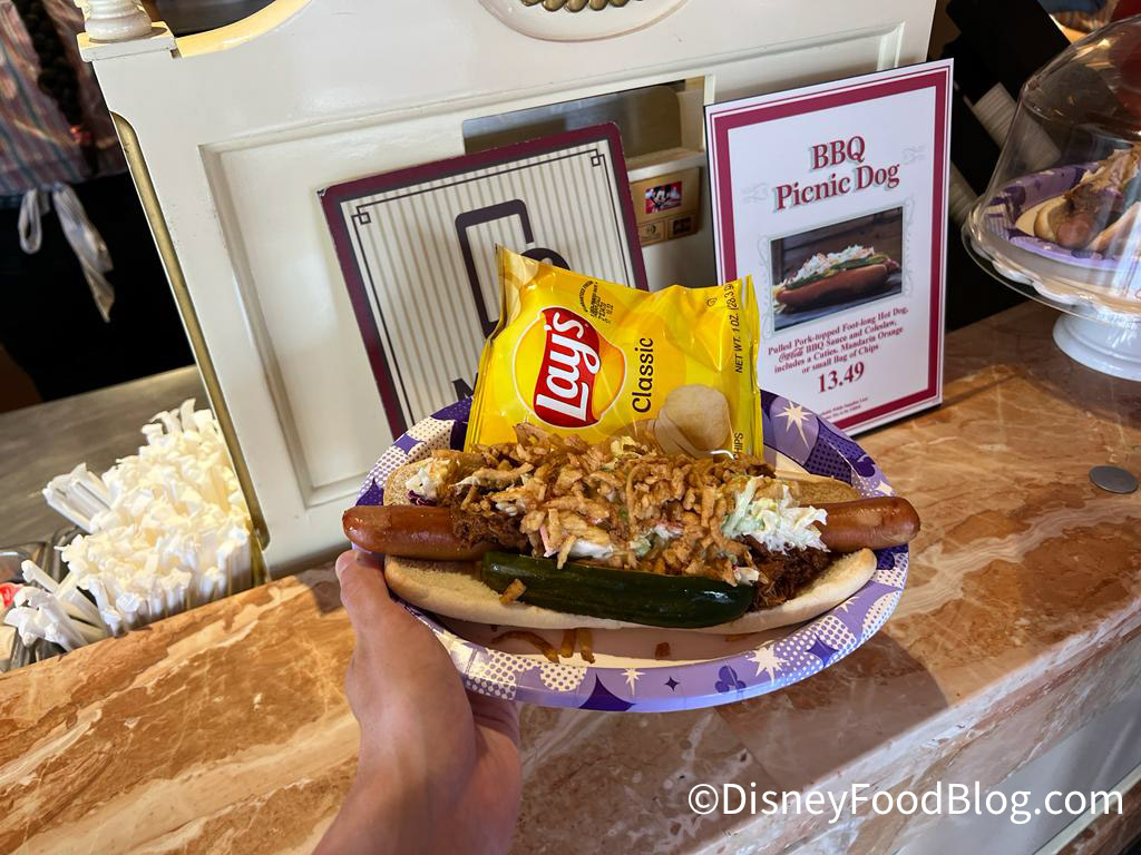 We also tried the new BBQ Picnic Dog, which is a pulled pork-topped foot-long Hot Dog, Coca-Cola BBQ Sauce, and Coleslaw, and it comes with a Cuties Mandarin Orange or a small bag of chips. There is a LOT going on with this one, but it’s actually quite tasty!