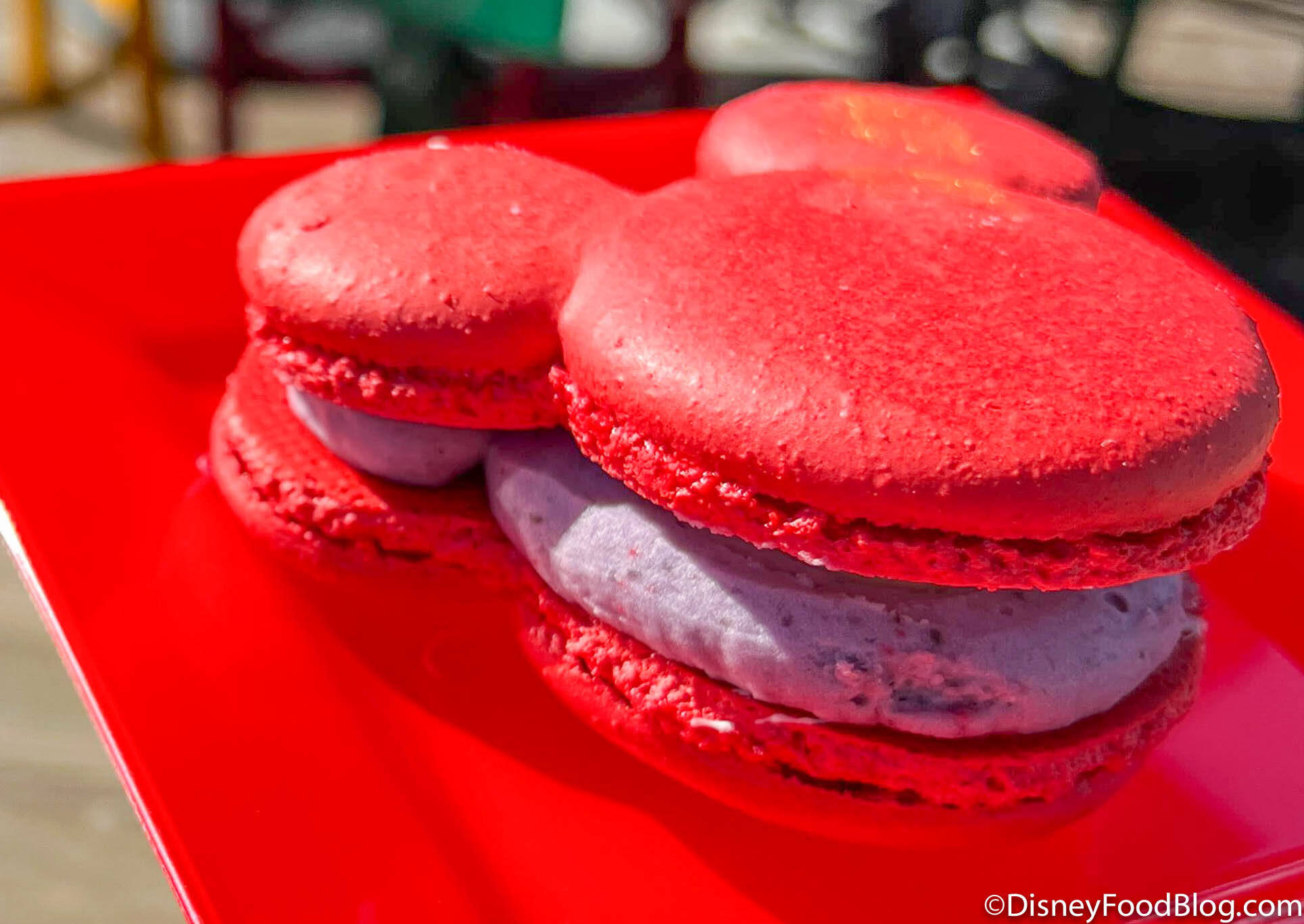 Next up we have the Mickey Mouse-shaped Purple Sweet Potato Macaron. This is a Red macaron filled with purple sweet potato buttercream and a crème fraîche center. It’s priced at $7.