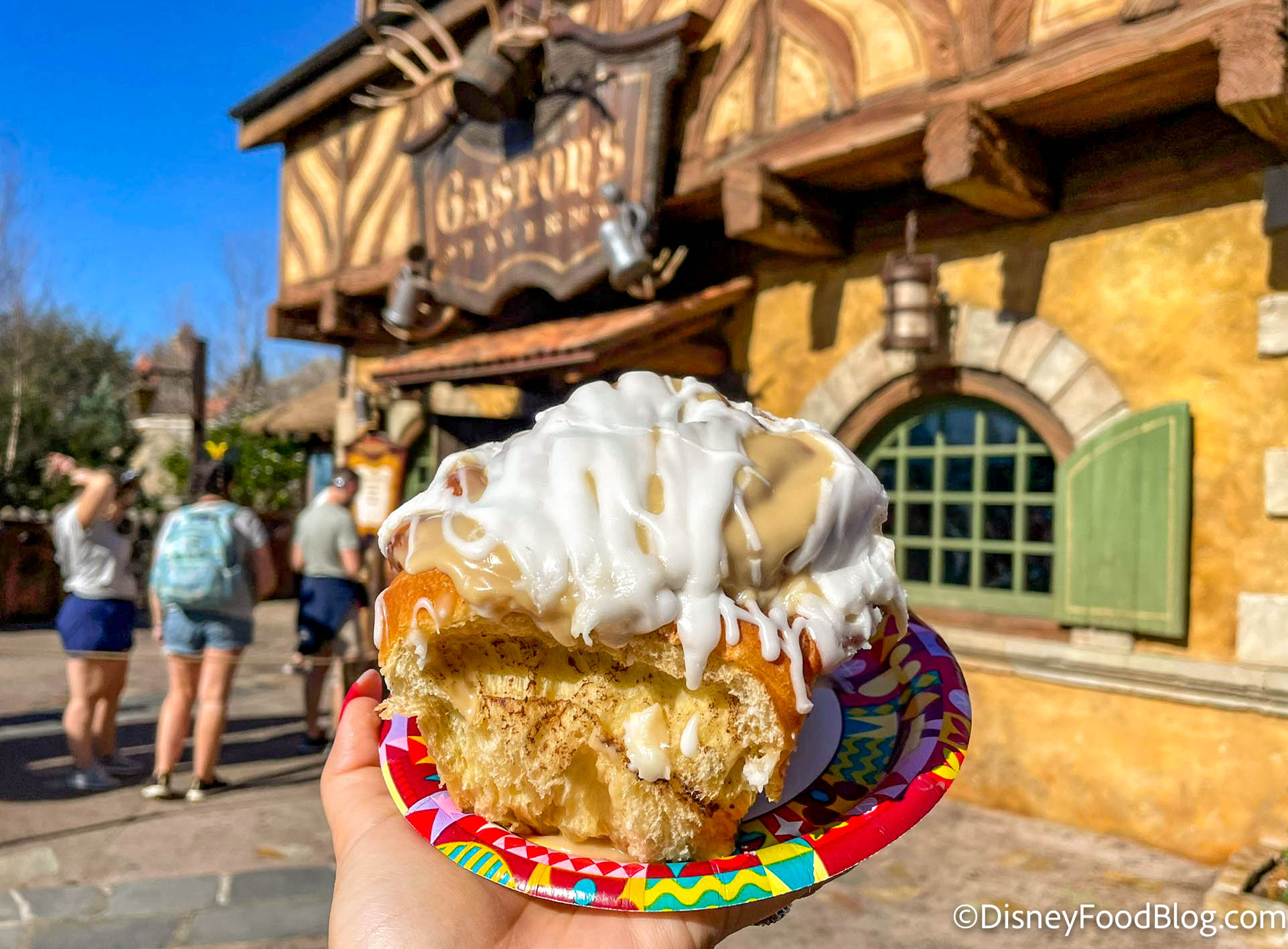 Okay, we can’t forget about everyone’s favorite ego-maniac and head on over to Gaston’s Tavern in Fantasyland. No one serves up some exclusive Magic Kingdom treats like Gaston! If you’re looking for a tasty and filling breakfast, try the Warm Cinnamon Roll, but let’s be real, this cinnamon roll is too good to restrict to just one meal.