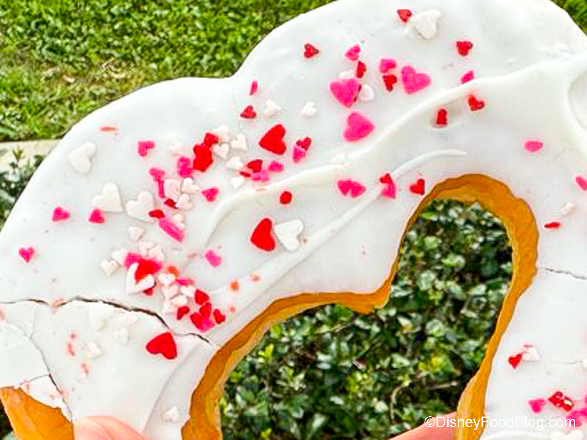 Meet the Valentine’s Day Donut, which is, yes, shaped like a heart (sort of…). It’s also MASSIVE! It’s a yeast donut with white icing and heart-shaped sprinkles. Although the flavor is a little basic (it’s just a regular vanilla donut), it gives us nostalgic feels, particularly with the icing that reminds us of the sugar icing we put on cookies.