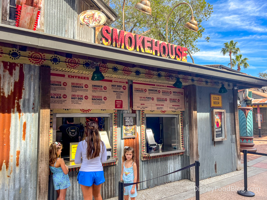 You’ll find The Smokehouse over on the West Side of Disney Springs, near the M&M’s Store and City Works. It’s the counter-service sister to the table-service House of Blues Restaurant, and you’ll find plenty of barbecued eats and snacks here.