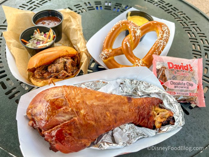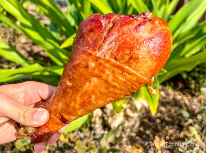 Moving on to our meatier dishes, we picked up the Smoked Turkey Leg for $14. This thing is MASSIVE. This could easily be split between two people or just one really hungry carnivore. There was a ton of meat on the leg, but it was rather salty (not uncommon for turkey legs.) It did have a great smoky flavor, though, and it’s nice to know you can get a turkey leg in Disney Springs if you want it.