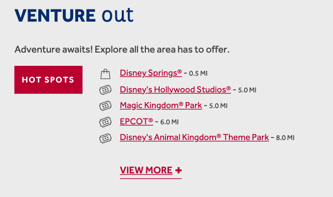 That puts it about 5 miles away from Disney’s Hollywood Studios and Magic Kingdom, 6 miles from EPCOT, and 8 miles from Disney’s Animal Kingdom.