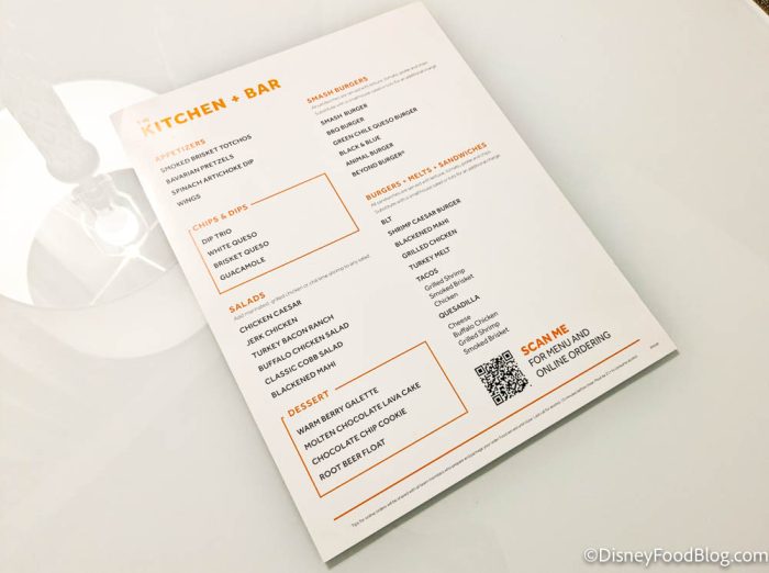 Our table had an advertisement for the Kitchen + Bar restaurant…