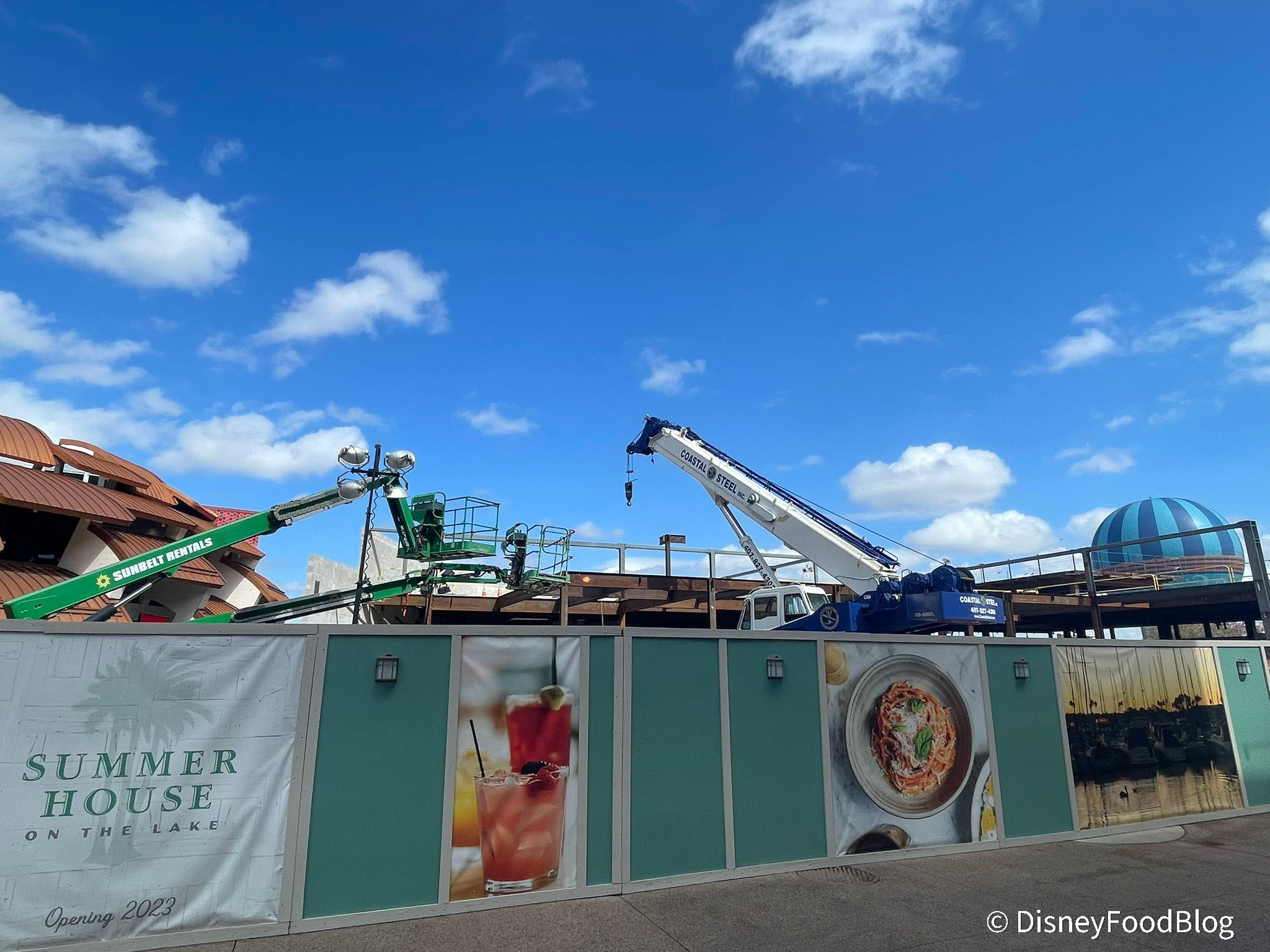Crews are still working on the main structure for Summer House on the Lake, coming to Disney Springs later this year.