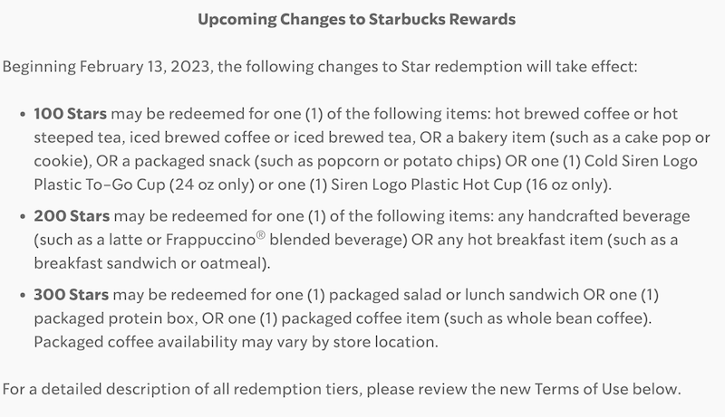On February 13th, 2023, Starbucks will be updating their rewards program. The amount of stars needed to receive free food and beverages has DOUBLED for some items.