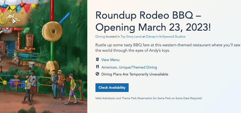 That’s right! Right now, you can head to your My Disney Experience app or the Walt Disney World website for Roundup Rodeo BBQ and make a reservation for dates starting March 23rd.